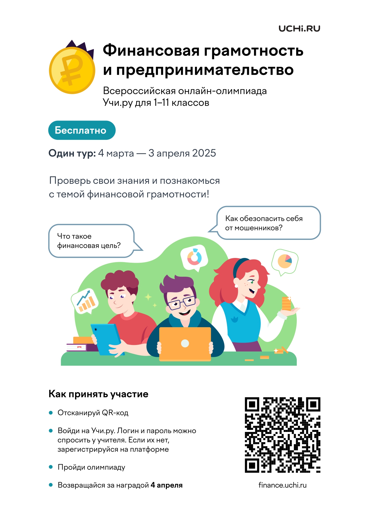 Всероссийская онлайн-олимпиада по финансовой грамотности и предпринимательству для школьников на образовательной платформе Учи.ру
